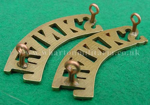A scare pair of Royal Tank Regiment 'TANKS' brass shoulder titles, nice condition. These are becoming hard to find as a pair.