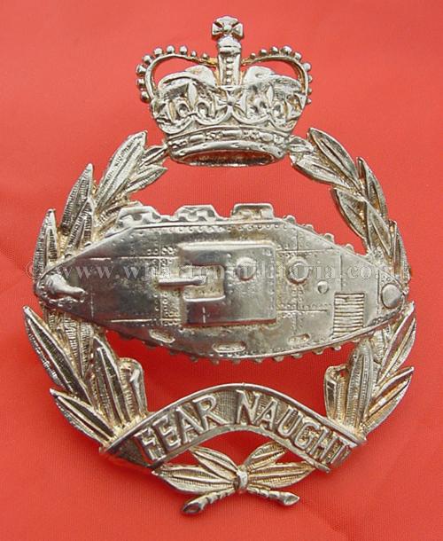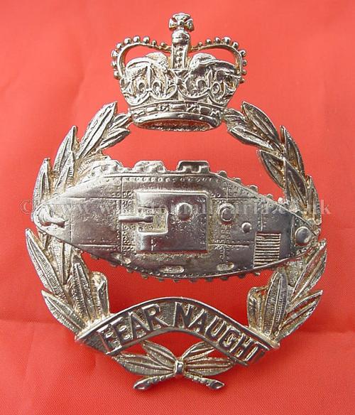 Royal Tank Regiment - Queen's Crown, a sought after MK2 glengarry & bonnet badge in white metal, this Mk2 badge has the longer lugs for a bonnet though can still be used on the glengarry. Mk2 badges are quite scarce to find these days, especially in this condition.