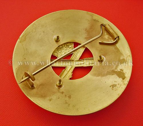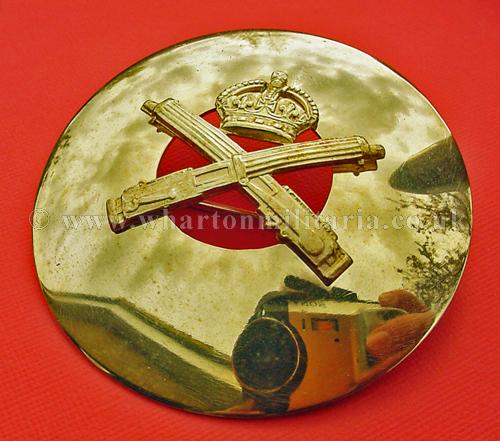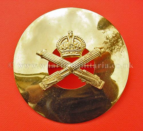 Royal Tank Regiment plaid brooch/disc, in excellent to unworn condition, approx size 86mm dia. gilt plate, large brooch pin to back. A very nice looking plaid most likely associated to 4RTR or the Pipes and Drums.