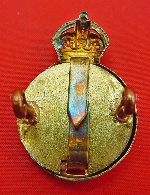 The Life Guards Officers, Kings Crown, frosted gilt burnished fully fretted regimental title and Edward 8th cypher centre backed by red/blue vitreous enamel - (1/2 inch lugs) - Firmin, extremely scarce.