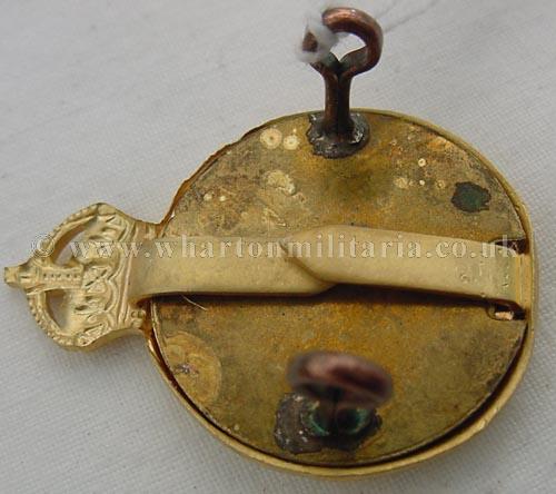 First Life Guards Officers, Kings Crown, frosted gilt burnished fully fretted regimental title and GVR cypher centre backed by red/blue vitreous enamel - (1/2 inch lugs) - Firmin, very scarce.