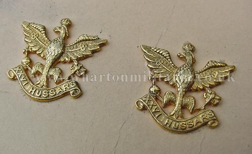 26th Hussars Officers Cap and Collar Badge Set