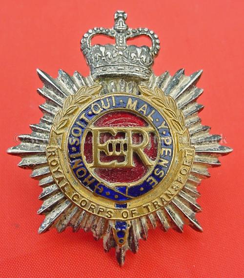 Officers cap badge to the Royal Corps of Transport, nice officer quality with all enamel intact, a fine badge, a little discolouration over time.