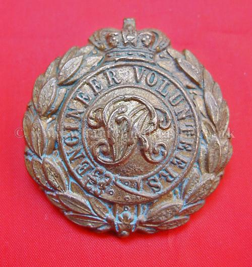 Victorian Royal Engineers Volunteers cap badge, both lugs intact, nicely domed shape QVC badge.