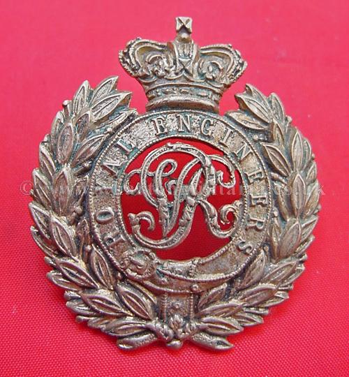Victorian Royal Engineers cap badge, both lugs intact, nice QVC badge in white metal for volunteers.