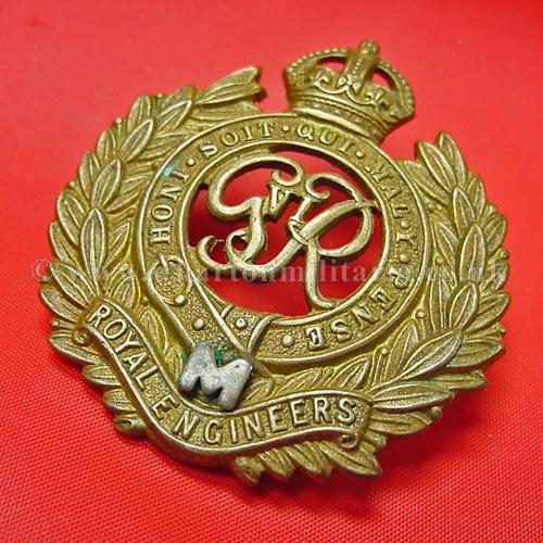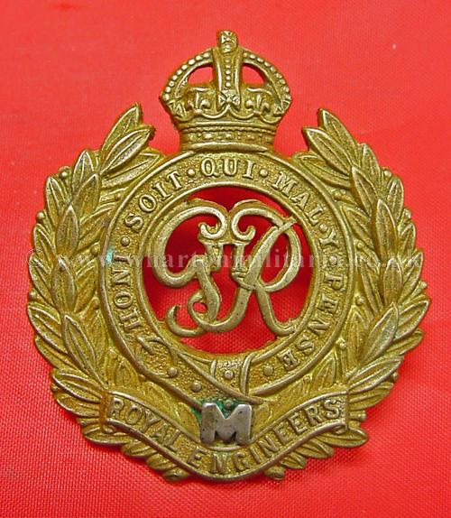 A scarce George 6th Royal Engineers Militia cap badge, with the 'M' in white metal, badge is in lovely condition, a difficult badge to find.