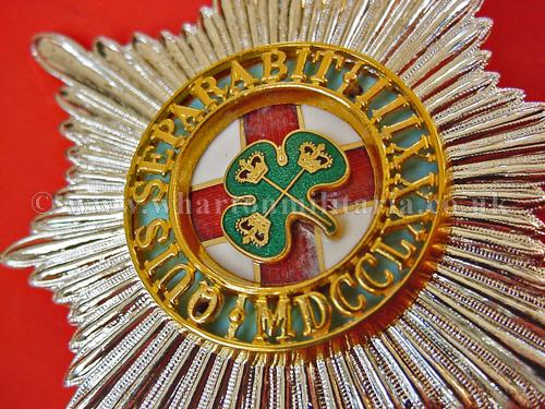 Irish Guards Pipe Major's badge, four piece silver, gilt and enamel construction, fretted centre with enamel backing, in excellent to unworn condition, a scarce badge to find these days.