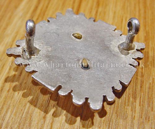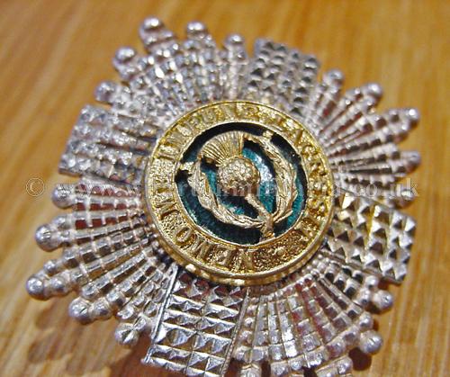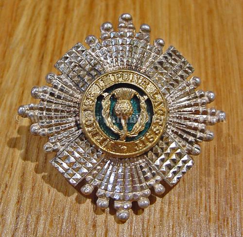 Scots Guards Officers cap badge in excellent condition retaining its highlights, possibly silver though not marked, minimal wear evident. A fine example of this badge. Approx 50mm point to point.