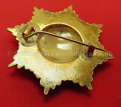 A very nice Coldstream Guards Officers cap or lapel badge, beautifully gilt finish, fitted with a brooch pin, sometimes worn as a beret badge but more often as a dress badge on a jacket lapel, may well be used as a sweetheart too however is full size, approx 45x45 mm, a top quality officers badge.