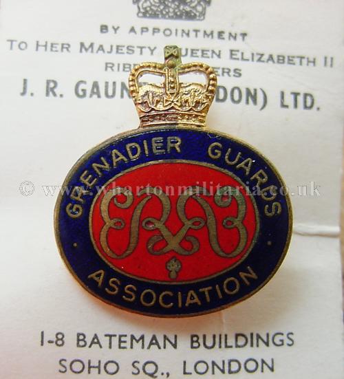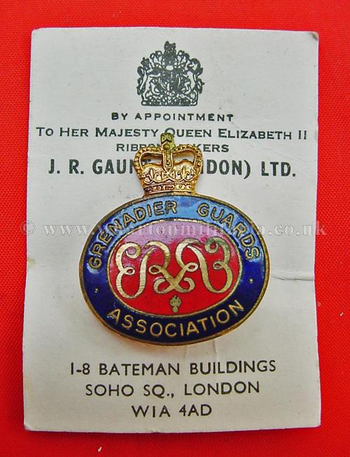 Grenadier Guards Association badge, still on J. R. Gaunt makers card, approx size of badge 25mm width and 30mm in height, rear pin intact, badge never been off its card, a nice example.