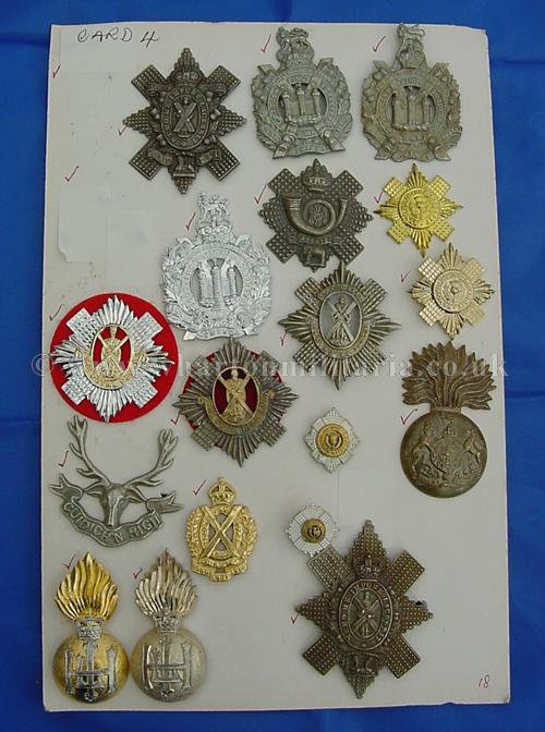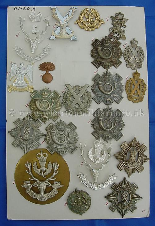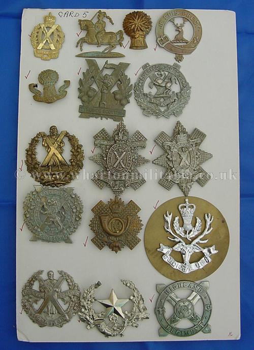 I shall be breaking up these 5 cards of Scottish regimental cap badges and will be doing photographs in due course ready to list the badges individually. If you see something that you require for your own collections simply email me. I will sell individually, in multiples or as a whole. I have a similar number of cards of just Officers cap badges too, again all available.