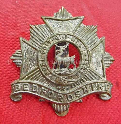 Bedfordshire Regiment cap badge, pre-1924, in white metal