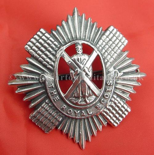 The Royal Scots, solid silver cap badge, marked 'silver' in 2 places, a really nice and heavy solid silver badge, circ 1920s to WW2 period. These older badges are getting scarce to find especially as many are melted down due to their weight in silver. An excellent silver cap badge still retaining the scarce thickened bonnet pin.