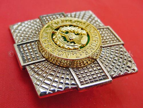 Royal Scots Officers cap badge in excellent condition retaining its highlights, unissued and unworn, a very fine heavy quality badge that has a nice feel and look to it.