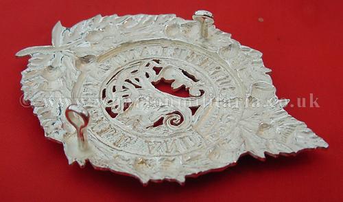 Argyll & Sutherland Highlanders, Officer's cap badge, fully fretted centre, frosted silver plate with burnished highlights (1/2 inch lugs), these are now quite difficult to find.
