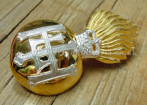A now scarce Royal Highland Fusiliers Officers cap badge, silver and gilt plated, beautiful condition, one of the harder badges to find, a fine and sought after example of this badge