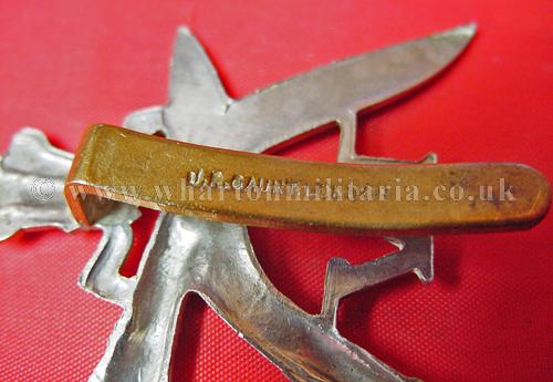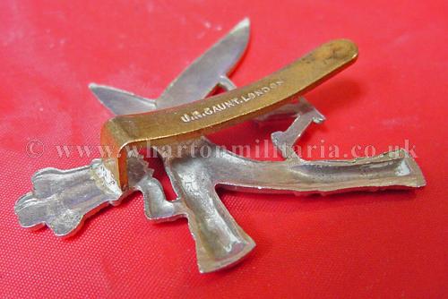 4th Prince of Wales Own Gurkha Rifles cap badge in excellent condition, white metal, with slider, slider maker marked 'JR Gaunt, London'