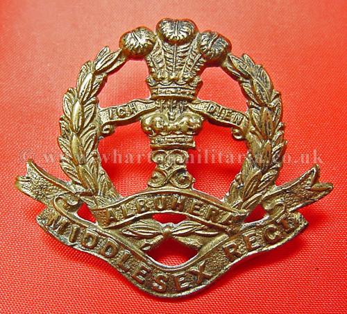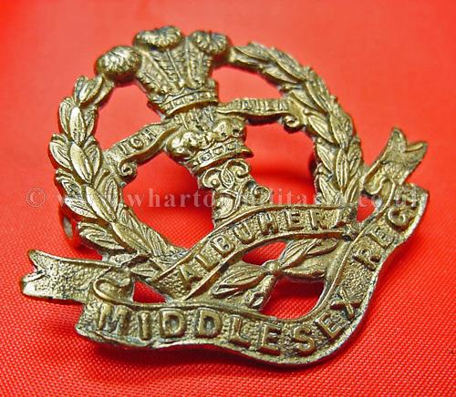 Middlesex Regiment cap badge, both lugs intact, nicely toned.