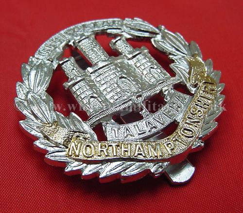 A difficult to find Northamptonshire Regiment anodised cap badge in unworn condition, maker 'Wm Dowler (B.Ham)'