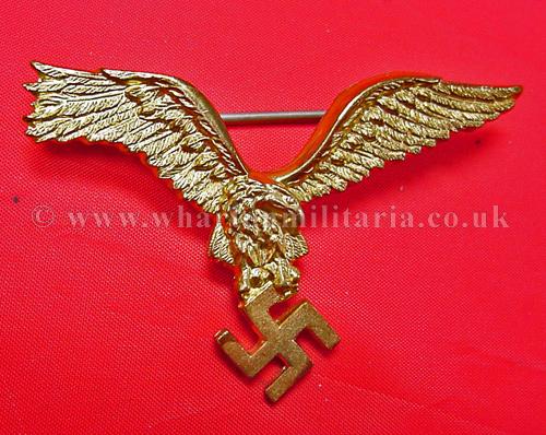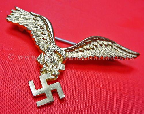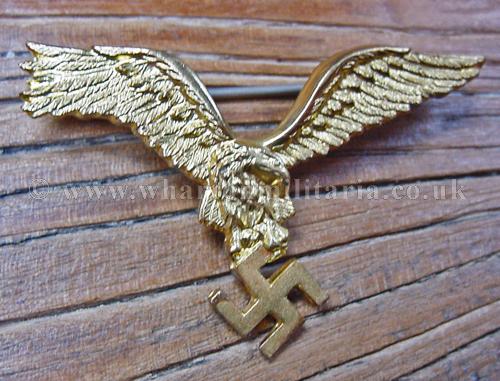 Luftwaffe Eagle brooch, a pilot badge eagle has been gilt plated and fixed with a brooch pin, it is very good quality possibly an original eagle that has been adapted, looks impressive. Something a little different.