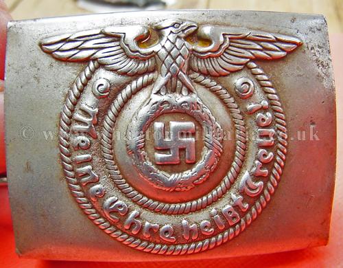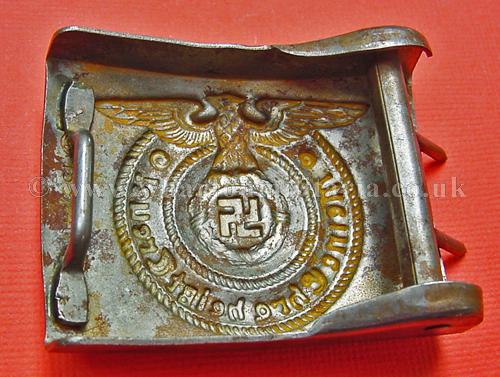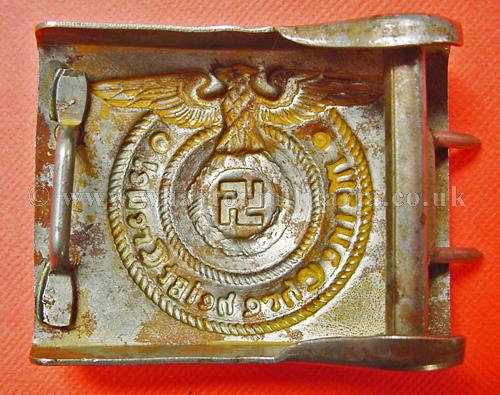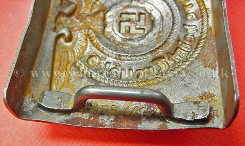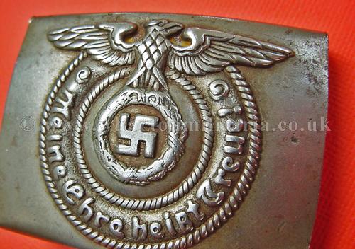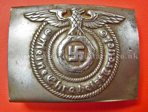An excellent reproduction SS enlisted soldiers steel belt buckle in good condition, maker marked 'RZM 155/40' along with the SS runes. A top end German made example of an SS man's combat buckle, excellent quality all round, shame is not a war time example.