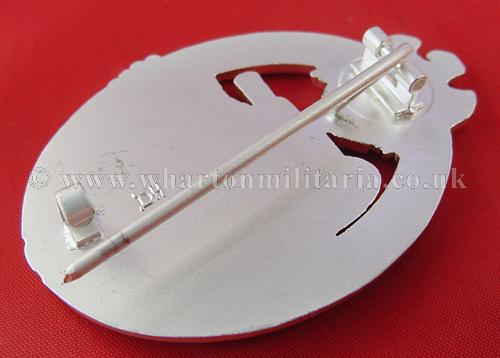 A very nice WW2 German Panzer Assault badge in silver, this came in within a collection, I cannot guarantee this badge as I believe it to be a reproduction, its finish is spot on as it would have been when awarded, I believe its manufacture is of German origin, possibly on original dies. Would make a credible gap filler, again, please note that this is sold as a reproduction.