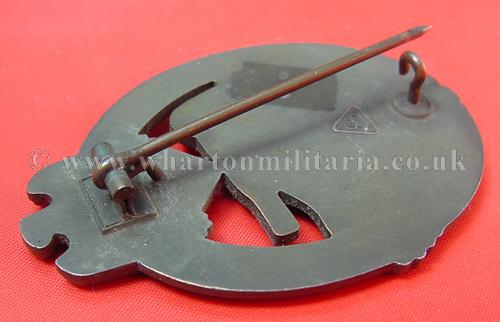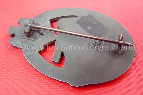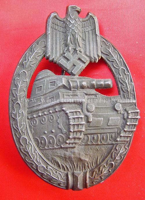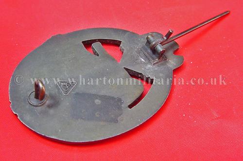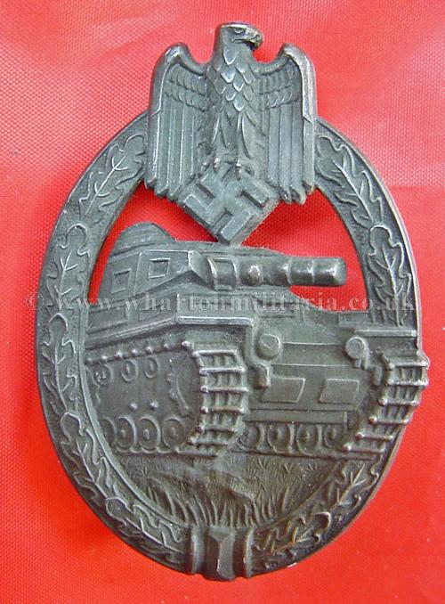 An excellent quality WW2 German Panzer Assault badge in silver, maker marked 'AS' within a triangle for Adolf Scholze, I cannot guarantee this badge as I believe it to be a reproduction, however, the finish is spot on as it would have been when awarded, I believe its manufacture is of German origin, possibly on original dies. Would make a very credible gap filler, again, please note that this is sold as a reproduction.