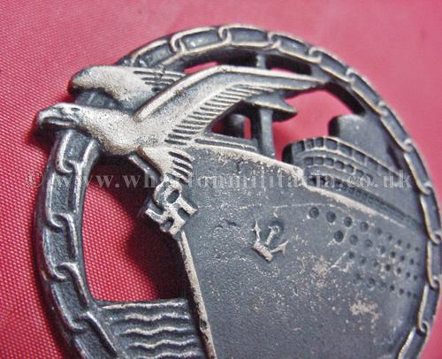 Reproduction WW2 German Kriegsmarine Blockade Runner badge, very nicely made, difficult to tell not original, most likely 70-80s manufacture, marked 'Richard Feix, Gablonz'.