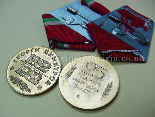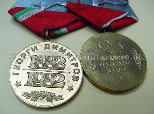Bulgarian Medals - Georgi Dimitrov 100 Anniversary and 25 Anniversary of People's Rule, in very good condition with ribbons and mounting bar.