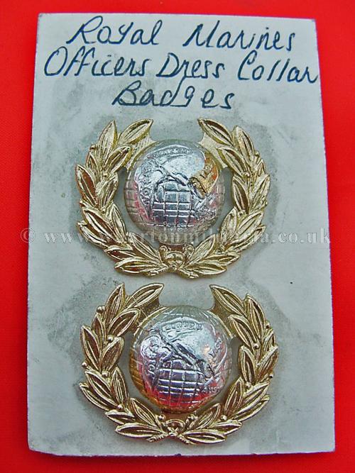 Royal Marines Officers collar badges, anodised- staybright, circ 60s plus, unworn condition.