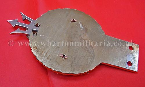A Royal Marines car grill badge in excellent condition, approx 13cm height by 7cm width, a nice old style car badge.