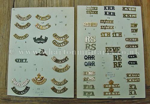Various shoulder titles, all in excellent undamaged condition, for sale by singles or pairs