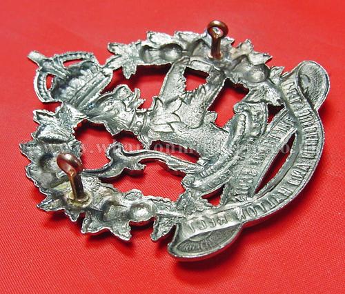 A difficult to find Canadian Lorne Scots, Peel Dufferin and Halton Regiment glengarry badge, circ 1935 - 1936, both lugs intact, approx size 3 x 2 1/2 inches, lovely badge, maker marked 'Scully Ltd Montreal'