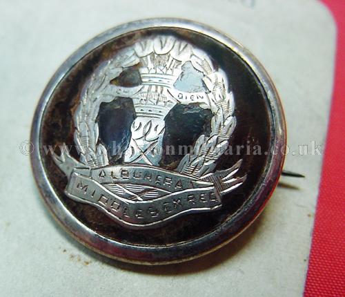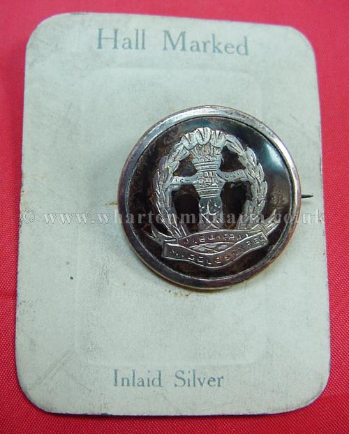 A scarce First World War period Middlesex Regiment silver and tortoiseshell sweetheart brooch still on its original makers card. Silver regimental badge inlaid in tortiseshell with rolled silver frame, frame is hallmarked 'FRG' for FR Baldwin and Birmingham Assay dated 1918. Beautiful unmarked brooch that has not seen the light of day since they were made, original pin and hook fittings, completely undamaged. Scarce and sought after sweetheart brooch especially in such unused mint condition. Diameter of badge 30mm.