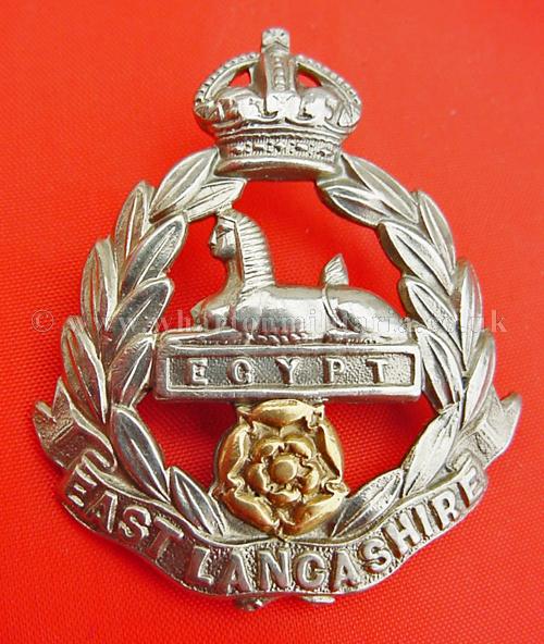 East Lancashire Regiment - ex cap badge fitted with a brooch pin - b & w/m, nicely done, a nice looking regimental sweetheart