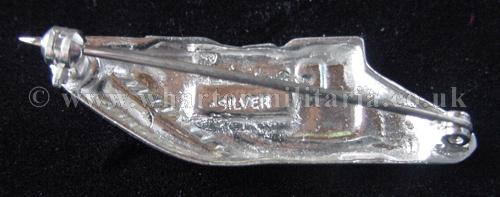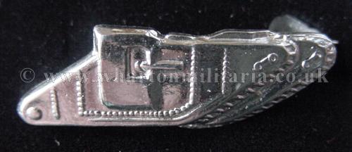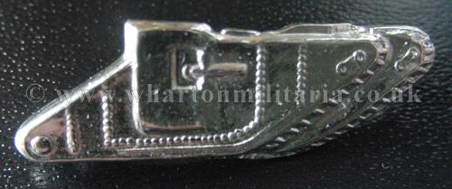 A lovely silver WW1 tank as a sweetheart badge, the tank was no doubt made from the centre of the Tank Corps cap badge, approx 40mm in length, has a brooch pin fitting, marked 'silver' on a small oblong - not a plate but a raised platform - really nice sweetheart and like most tank corp items quite scarce.