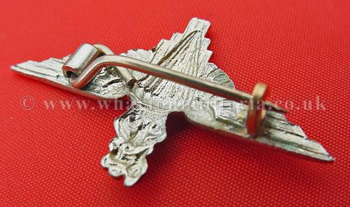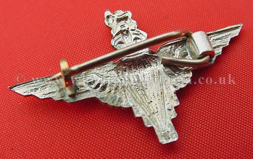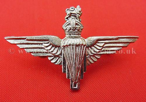 A scarce WW2 Parachute Regiment lapel badge, often used as a sweetheart brooch, in excellent condition, polished white metal, approx 40mm wide, lapel pin to the back, scarce badge.