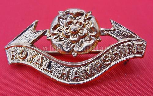 WW2 Royal Hampshire Regiment sweetheart lapel badge, often used as a sweetheart brooch, in excellent condition, polished gilted metal, approx 35mm wide, jewellers pin to the back.