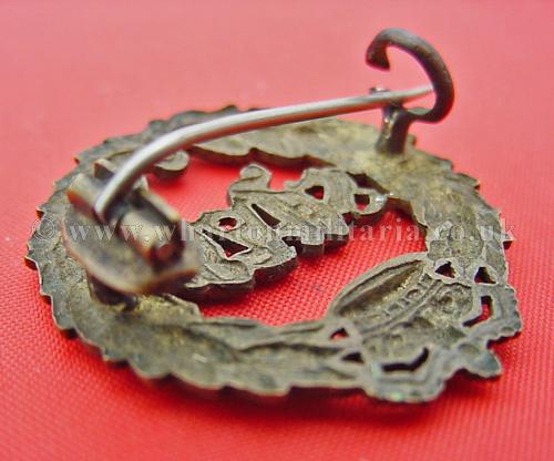 2nd Dragoon Guards (Queen's Bays) sweetheart badge, a fine early sweetheart circ 1889-1901, this is actually a soldier's modified collar QVC crowned badge, one lug has been cut to form a hook whilst the other lug has become the post to which a jewellers pin has been added. Really nice to come across such an early collar badge sweetheart, excellent condition overall.