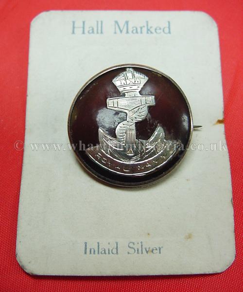 A scarce First World War period Royal Navy tortoiseshell sweetheart brooch still on its original makers card. Silver regimental badge inlaid in tortiseshell with rolled silver frame, frame is hallmarked 'FRG' for FR Baldwin and Birmingham Assay dated 1918. Beautiful unmarked brooch that has not seen the light of day since they were made, original pin and hook fittings, completely undamaged. Scarce and sought after sweetheart brooch especially in such unused mint condition. Diameter of badge 30mm.