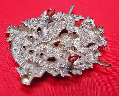 An Aberdeen Militia Volunteers glengarry badge, possibly silver or silver plate, approx 55 x 45mm, little wear with almost all frosted finish remaining, both lugs intact, a very nice volunteer badge.
