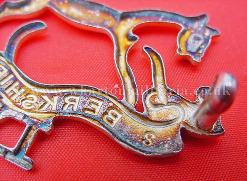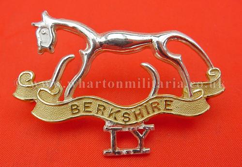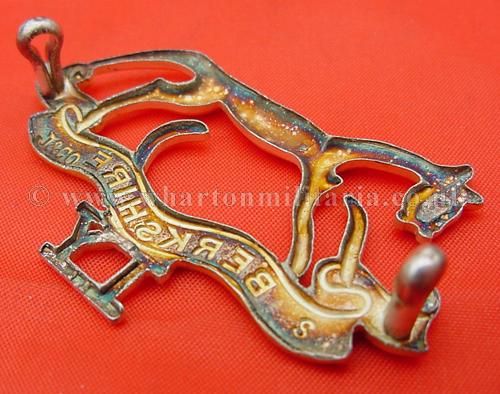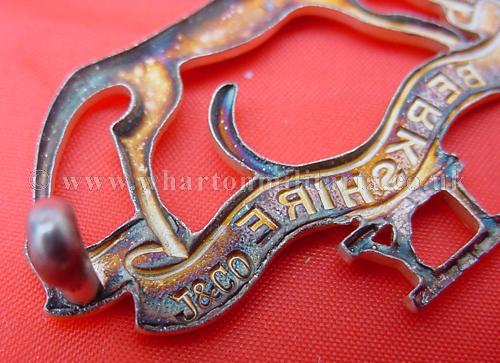 A scarce turn of the last century Berkshire Imperial Yeomanry, Officers cap badge frosted gilt and sterling silver plate burnished, a beautiful badge in unworn condition, maker marked 'J&CO' for Jennens and Co along with the 'S' for sterling silver, circ 1901-08, the best example of this badge that I have seen to date. A hard to find badge especially in this fine condition.