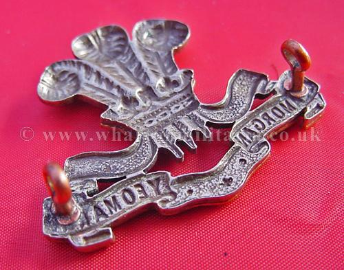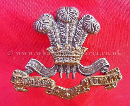 Glamorgan Yeomanry other ranks bi-metal cap badge in excellent condition, minimal signs of wear, both lugs intact, a nice early quality example.