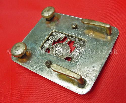 Scottish Regiment Piper cross belt plate in excellent condition retaining most of its finish, all rear hooks and buttons intact, approx size 2.5 x 2 inches, a nice uniform item.
