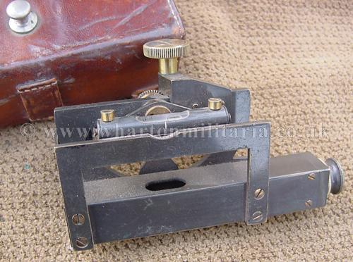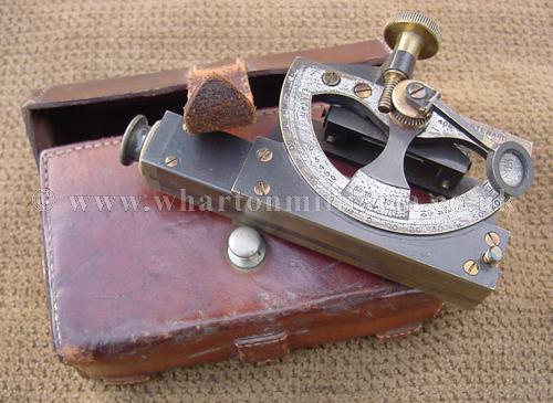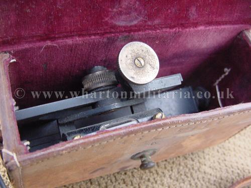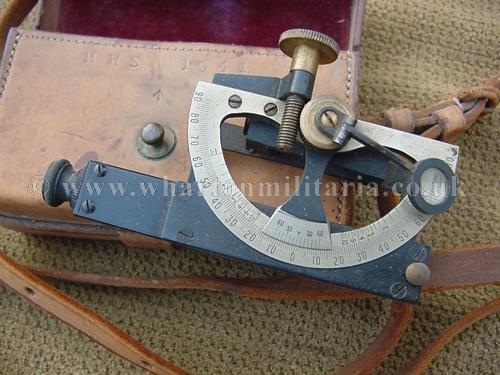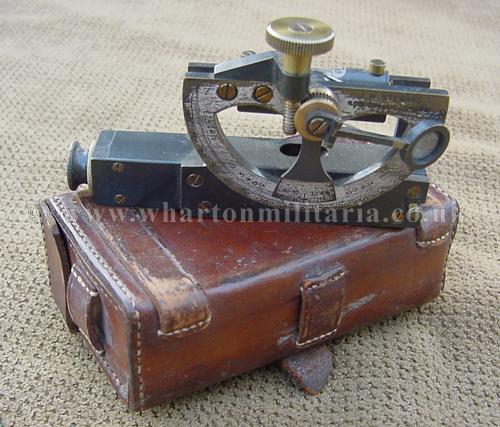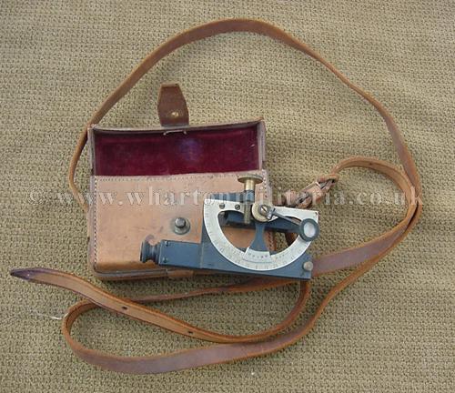RSA (R S Aldridge of London) Mk IV Abney level B2152 dated 1940. A military model Abney level made for the British Army during WW2. The vernier is divided to 10 minutes and it is adjusted by the thumb wheel at the top, it has degree and gradient scales for measuring height, slopes and angles of elevation. Having a square base the Abney level can be mounted to any plane surface. Complete with its war time leather case, case dated 1941. A fine wartime instrument in excellent useable condition.