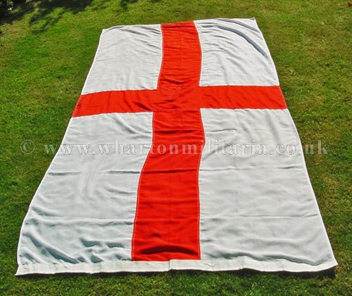 A fine quality multi-piece construction St. George flag, 9x4 ft, beautifully made, circ WW2 onwards, ex-MoD hence quality, lovely flag that could be used as a drape, bedspread etc - I have a couple more St. George flags to list including some quite large flags, various sizes, in the meantime simply email for further details.