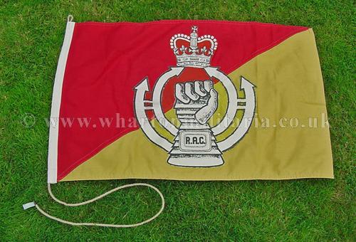 A fine quality multi-piece construction Royal Armoured Corps flag, 3x2 ft, beautifully made, circ 1950s onwards, ex-MoD hence quality, lovely flag that could be used as a collection centre piece. Most likely a Squadron flag due to size.