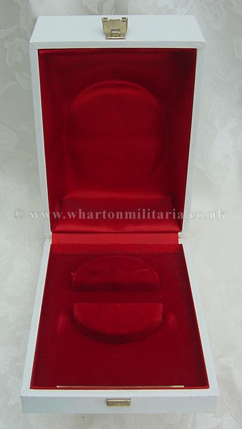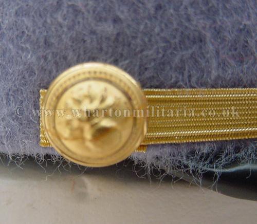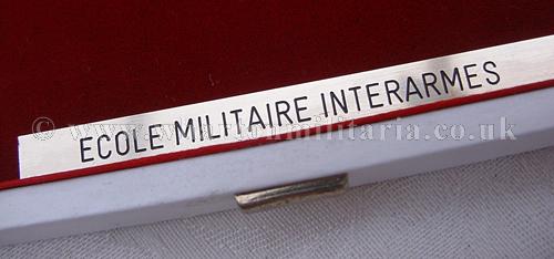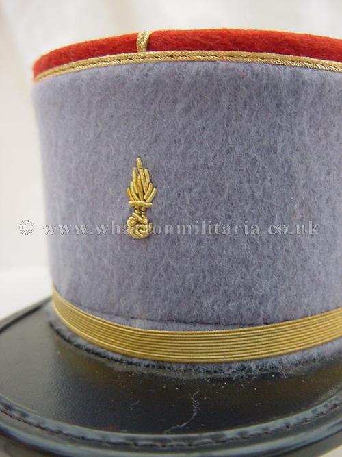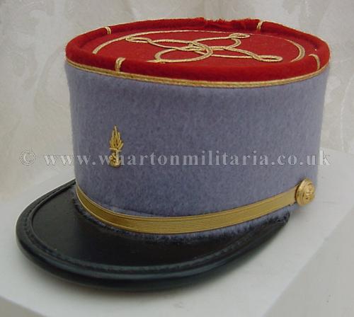 A beautiful miniature French Kepi of the Spahis, traditionally light cavalry regiments, France retains one unit of Spahis as an Armoured Regiment, all the other Spahis regiments were disbanded by the early 1960s. The 1st Régiment de Spahis Marocains remains as the armoured regiment and saw service in the Gulf War. The regiment also maintains the traditions of the entire Spahi corps as it previously existed. Exceptionally for a French armoured cavalry regiment, it uses gold (and not the usual silver) insignia. The "Ordonnance du Roi portant organisation de la cavalerie indigène en Algerie" of 7 December 1841 establishing the Spahis as a regular corps of the French Army specifies this distinction for sous-officers, brigadiers and officers both French and indigenous. This beautiful presentation kepi was presented to the Royal Tank Regiment in the early 60s by seconded senior Spahis officers following their tour with the RTR. The kepi is about one third scale, finely made and stunningly presented within a purposefully made box. The box has the manufacturer's details 'Ecole Militaire Interames' name plate within the red silk lined front edge. A fine item in excellent condition overall - slight fraying on the rear right edge where the hat top has rubbed or moved against the box inside.