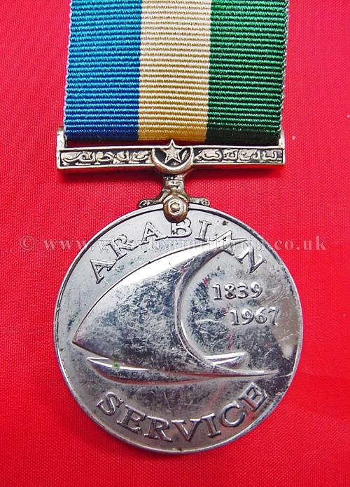 Arabian Service Medal, instituted by the Aden Veteran's Association to commemorate British Forces involment in South Arabia from 1839 to 1967.