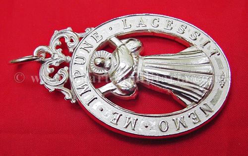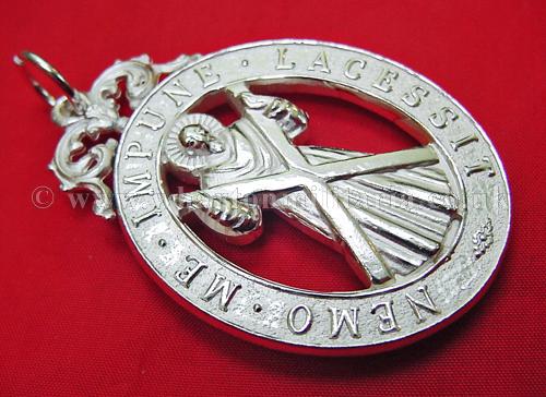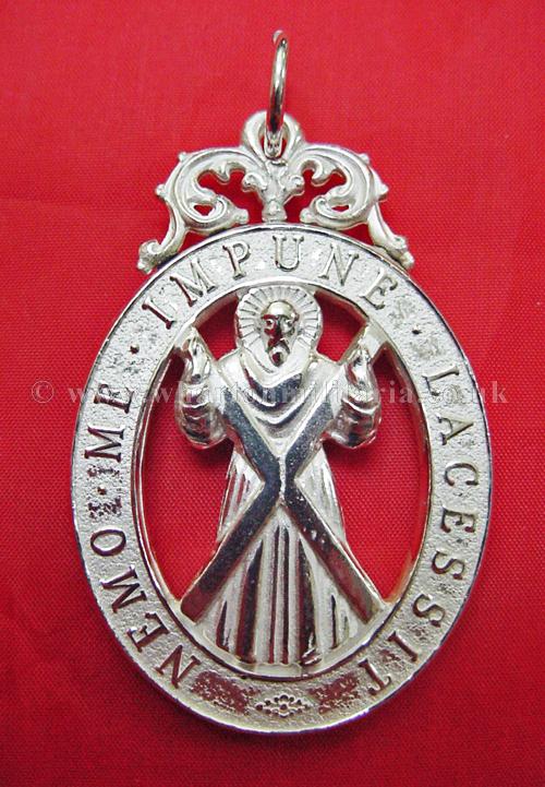 Scottish medal possibly related to the Order of the Thistle, possibly a neck or sash award or badge, in excellent condition retaining its frosted silver finish, medal is approx 60x40 mm not including the ring, I cannot see any hallmarks, it is non magnetic, quite heavy, lovely detail, obviously a well made quality medal with a Scottish connection, maybe even a Regimental medal.
